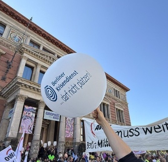 Berlin bleibt sozial! Berliner Krisendienst setzt sich auf Protestkundgebung gegen Kürzungen ein